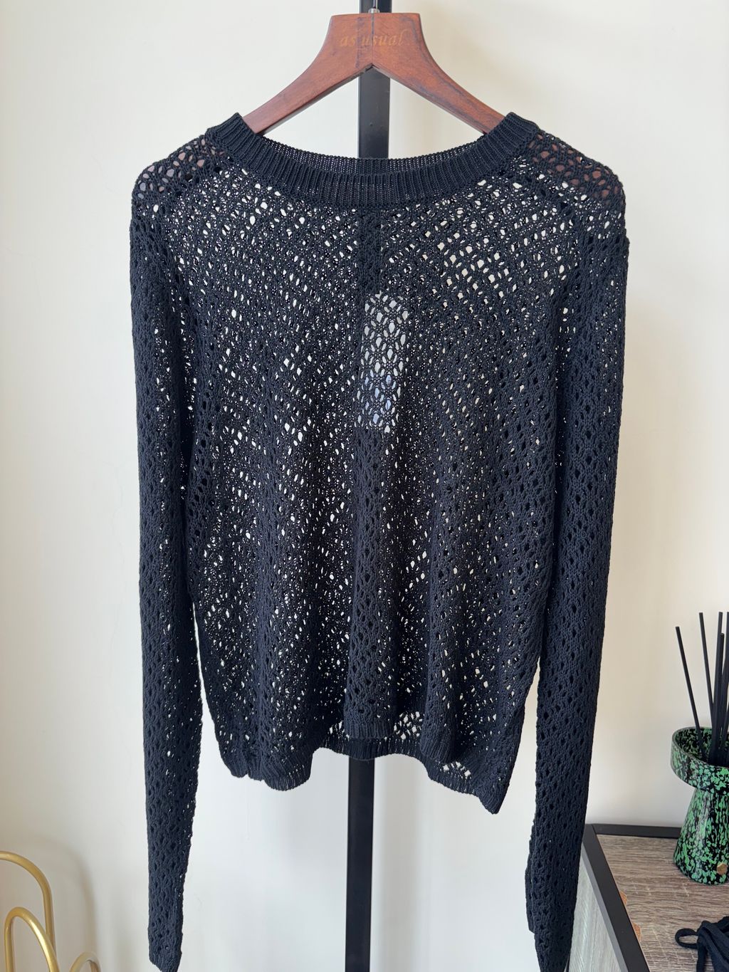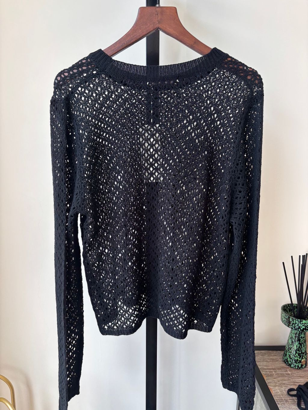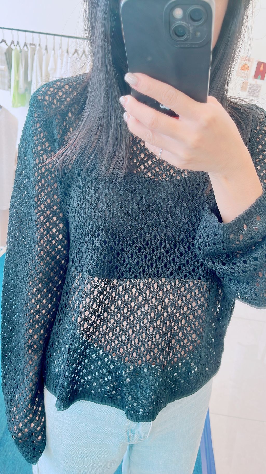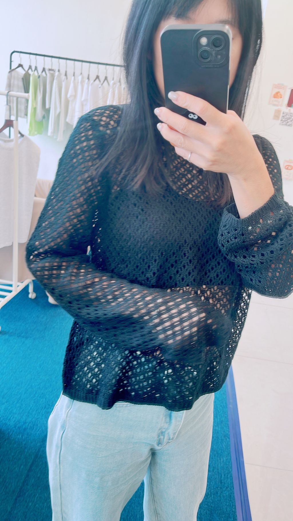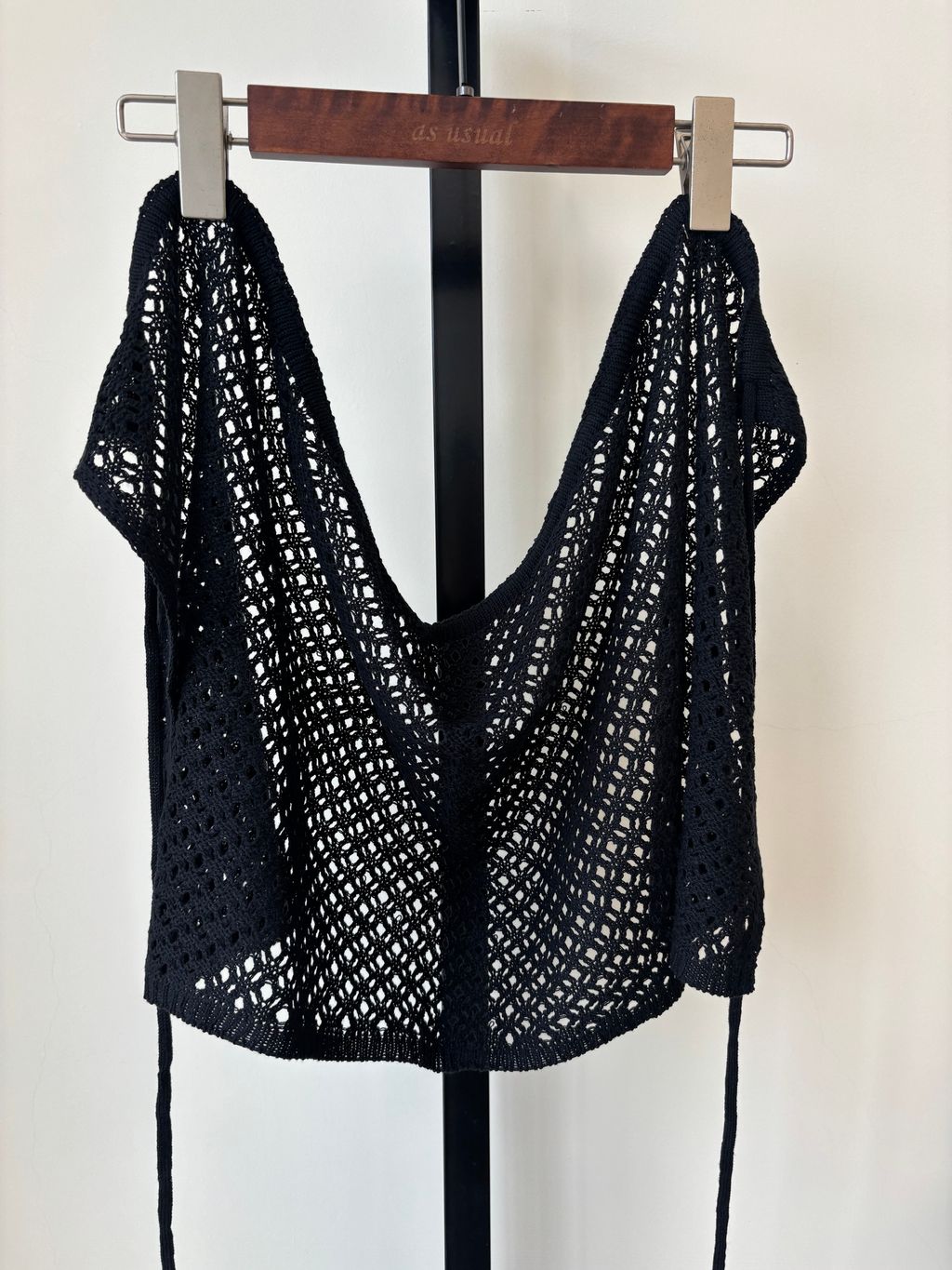 洞洞微透綁帶上衣(黑)-預購